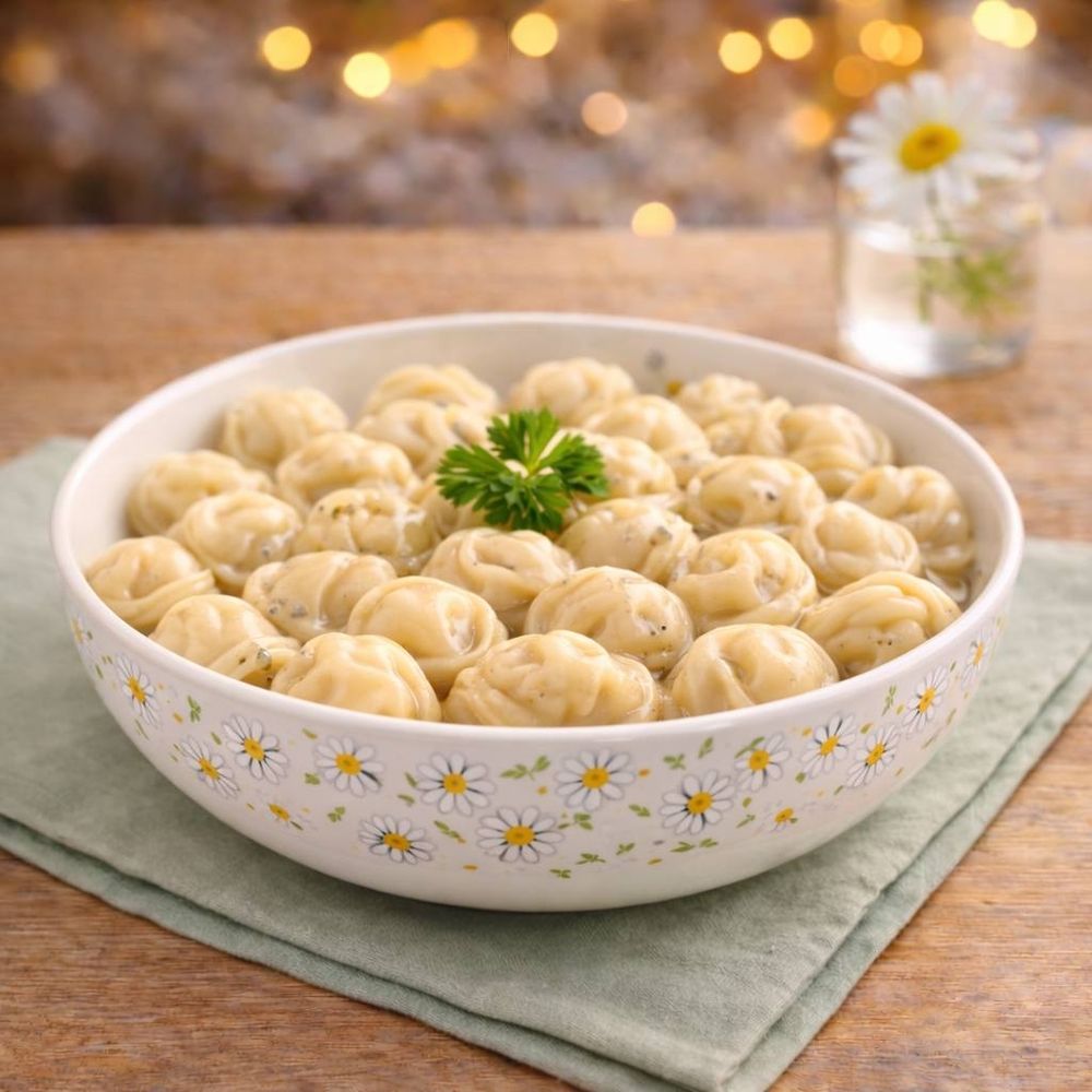 Мини пельмешки из курочки с сливочным маслом и зеленью.